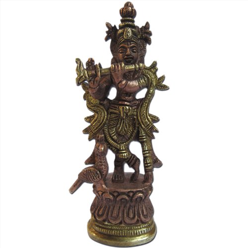 Lord Krishna Playing Flute Brass Statue Handmade Sculptures from India 4.5 x 1.5 x 2 inches Review