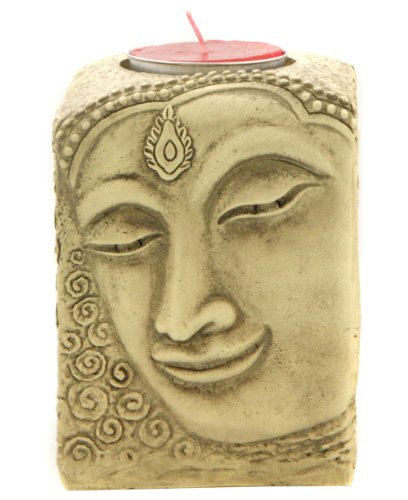 Bring a little tranquility to your space with these tea-light candle holders with Buddha figure on them. Sold as a set of two, these are made from resin. The pieces depict Buddha face on one of sides and intricate design on all others. Each Buddha tea-light holder measures about 3.5 inches high and 2.75 inches wide/deep. Tea lights are not included. Read more...