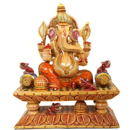 Free Shipping Wooden Ganesh Statue - Hand Carved & Hand Painted @ Amazon.com