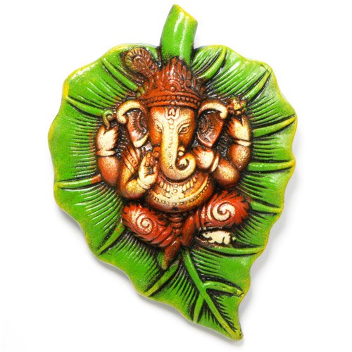 Free Shipping Ganesh on Leaf Terra-cotta Wall Hanging @ Amazon.com