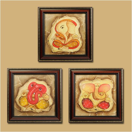 Free Shipping Set of 3 Hand Painted Embossed Ganesh Paintings @ Amazon.com