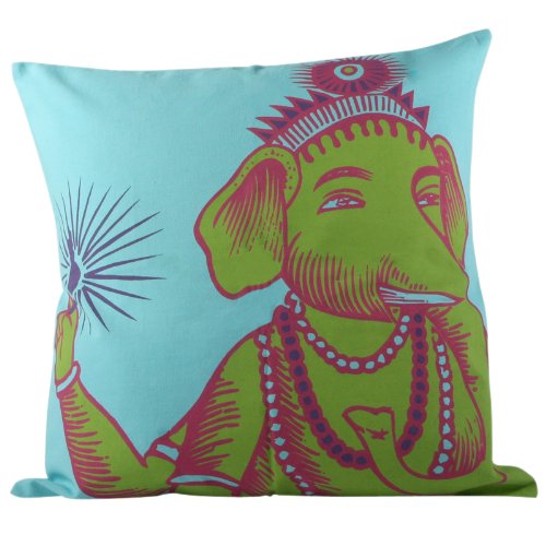 Ganesha, the affable elephant headed God is an important figure in Hindu mythology, known for his wisdom and intellect. Ganesh is worshipped before the start of any new venture as he is the 'remover of obstacles'. In this Ganesh Print throw pillow cover you see a printed image of Ganesha with a crown on his head that proclaims his majesty. He gazes kindly on his worshippers. The Ganesh pillow cover measures 22x22 inches and fits a 24x24 insert well (not included). Also available in yellow, pink and lime. Made of the fine cotton, it is the perfect accessory to add an ethnic touch to your space! Read more...