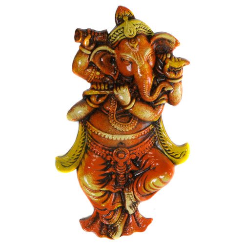 Free Shipping Orange Terra-cotta Ganesh with Flute Wall Hanging @ Amazon.com